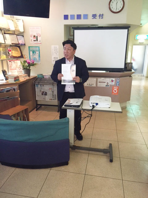 Mr Umezu Kosuke Director 来院。お肌を白くする「クリスタルトマト」とシミ取りクリーム「スキン・クラリティ・クリーム」のご講演をお願いして、約1時間お話しをお伺いしました。すでに当院で取り扱っている商品ですが、色の黒い沖縄女性にとっては本当に魅力ある「飲み薬」と「塗り薬」です。