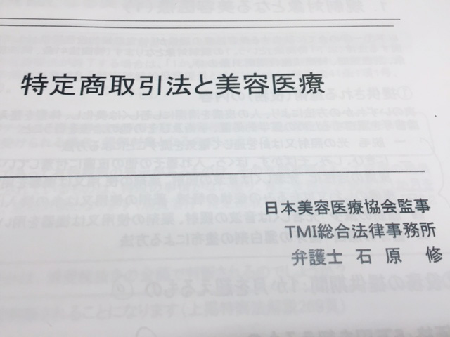 先日、東京で消費者庁の方に教えて頂いた「特定商取引法と美容医療」に関して当院の対策等をお互いに述べ合い勉強をしました。