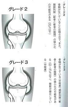 膝関節痛に悩まされる方は沖縄も沢山おられ、特に女性が多いのが特徴です。変形性膝関節症の分類は図(辻晋作著、ひざ痛は治るより)の様に4つの段階に分けられます。