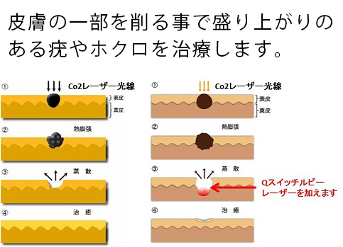 そのような時はホクロをCo2で焼いた後にQスイッチルビーレーザーを加えていく事にしております。これで略々完全に顔のホクロは取れるのですが、このやり方は保険が効きませんので自費扱いとなります。